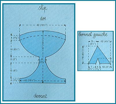 Slip: Faire au point de surjet plat, les coutures des côtés. Border les jambes d'un tour de m.s.