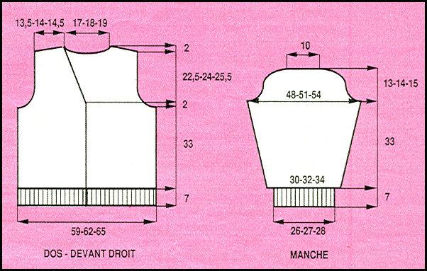 Puis tric. du 7ème au 62ème rg et term. en répétant jusqu'en haut du 59ème au 62ème rg de la grille "B".Emmanchures