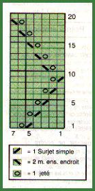 9ème rg: reprendre au 3ème rg.Zig-Zag ajouré: aig. # 3 sur 7 mailles