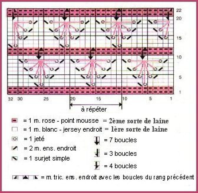 deuxième = point mousse - 1 m. rose sur la grille