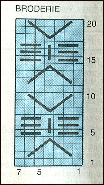 T.8 ans: 15 fs 1 m. ts les 6 rgs, 4 fs 1 m. alternativement ts les 4 et 6 rgs.