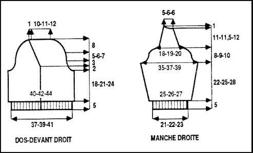 T.10 ans: par 1 m. lis., 6 m. endr. puis les explications.Emmanchures: