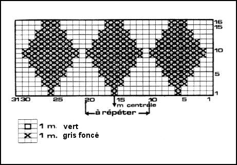 Jacquard: aig. 4.5. Suivre la grille, après le 16ème rg, reprendre au 1er rg.