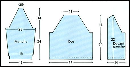 Avec les aiguilles # 3.5 et le fil marine, montez 38 m. et travaillez comme pour le dos.