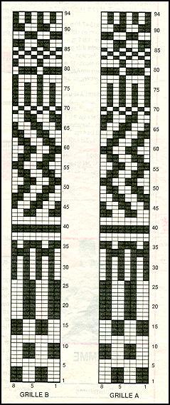 En sens inverse. Mais après les côtes, cont. droit jacquard "B" en commençant: