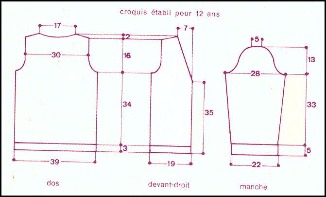 À 34 - 37 - 40 cm de haut. tot., rab. de ch. côté ts les 2 rgs 1 fs 4 m., 2 fs 2 m., 2 fs 1 m.. Cont. droit