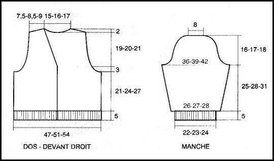 T.14 ans: à la m. 1 de la grille.Emmanchures: