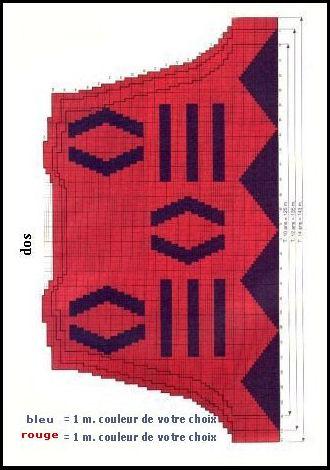 tric. 4 rgs couleur 2, *5 rgs couleur 1, 7 rgs couleur 2*, répéter de * à * jusqu'en haut.