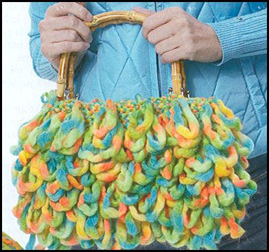 Ce fil a des parties minces d'environ 35.5 cm de long et des parties épaisses d'environ 20.5 cm de long. Le sac est travaillé avec les sections minces seulement et les parties épaisses sont laissées pour les boucles.