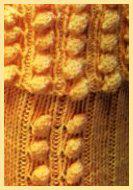 Au tour suivant, disposer les m. ainsi: (1 m. env., 3 m. endr.) 4 fois (1 m. env., 1 m. endr., 1 nôpe, 1 m. endr.) 2 fois (1 m. env., 3 m. endr.) 4 fois (1 m. env., 1 m. endr., 1 nôpe, 1 m. endr.) 2 fois (1 m. env., 3 m. endr.) 4 fois. Ce dernier tour donne l'emplacement des bandes de nôpes formées tous les 6 tours comme pour le revers.