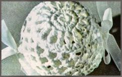Faire 5 m. chaîn. et fermer en rond avec 1 m.c. dans la 1ère de ces m. chaîn. Faire le 1er, 2ème et 3ème tours comme pour la bonbonnière avec anse.