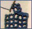 2ème rg: à la suite des 2 m. en l'air faites pour tourner, faire 2 autres m. en l'air pour le début du rang, passer la 1ère br. du rg précédent et la m. en l'air qui suit, puis faire 1 br. dans la 2ème br. qui se présente du rang précédent, puis *1 m. en l'air, passer la m. en l'air du rang précédent et faire 1 br. dans la br. qui suit,*; terminer par 1 m. en l'air, passer la 1ère m. en l'air placée après la dernière br. qui se présente du rg précédent et faire 1 br. dans la m. en l'air qui suit, 2 m. en l'air et tourner. Répéter le 2ème rg encore 3 fois et arrêter à la fin du 5ème rg, sans casser le coton. Faire alors le tour qui précède celui de l'assemblage, puis le tour d'assemblage, en suivant les explications données ci-bas.