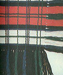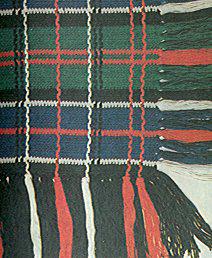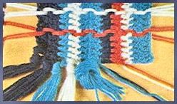 Franges: couper pour chaque frange, 5 aiguillées de 40 cm de long à plier en deux, dans le coloris correspondant à la couleur des rayures du plaid, comme le montrent les photos des deux variantes; puis nouer selon les explications données plus bas dans "DESSIN ÉCOSSAIS"