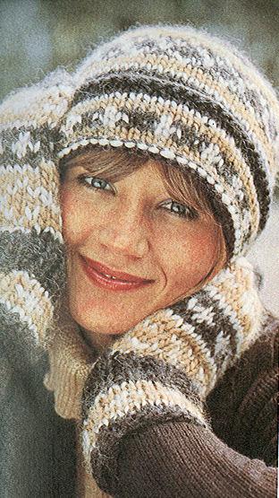 Voici 2 ensembles de bonnet et moufles au point jacquard; un même dessin en deux gammes de coloris. À vous de choisir les coloris qui vous plaisent.