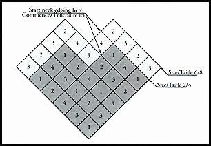 5 (P - M) 6 (G - 2TG) 7 (3TG - 5TG) pelotes de la 2ème couleurAiguilles 4.5 mm