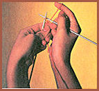 Méthode du pouce: on utilise une seule aiguille à tricoter.