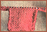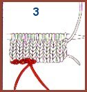 1. Prendre un fil de couleur différente du tricot à faire, (on l'enlèvera plus tard). Selon la méthode du pouce, monter la moitié du nombre de mailles nécessaires, plus une. Puis avec le fil destiné au tricot, travailler ainsi: 1er rg: *1 m. endr., faire 1 jeté (ramener le fil devant le tricot en le passant sous l'aiguille)* terminer par une m. endr.