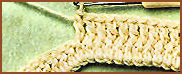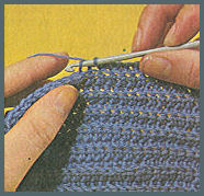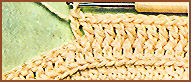 faire les br. devant ou derrière comme aux rgs précédents, en piquant le crochet dans la br. correspondante de l'avant-dernier rg, et remplacer les m. en l'air par 1 m.s. faite dans les br. du rg précédent et non de l'avant-dernier rg.