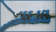 Faire 1 m. en l'air pour tourner, puis faire 1 m. serrée dans chaque m. de la chaînette. Aux rangs suivants, faire des m. serrées en piquant le crochet sous le brin avant de la m. de tête du rang précédent.