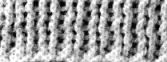 7ème rg: tourner l'ouvrage, prendre la laine claire et répéter le 2ème rang. Cont. ainsi en faisant 1 rg clair et 1 rg foncé, et en tric. alternativement 2 rangs à l'end. et 2 rangs à l'envers.