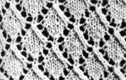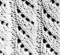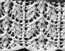 11ème rg: 2 m. end., *2 m. ens. end., 1 jeté, 1 m. end., 1 jeté, 1 surj. sple, 1 jeté, 1 surj. sple, 1 m. end.*.