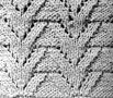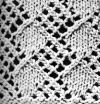 15ème rg: *5 m. end., glisser 1 m., laisser tomber les jetés, rép. 3 fois et glisser 1 m. On a 5 m. allongées sur l'aig. droite, les replacer sur l'aig. gauche et les tric. ens. à l'end. en les prenant par-derrière (les laisser sur l'aig.), 1 jeté, 1 m. end. torse dans ces 5 m., comme la 1ère, 1 jeté, 1 m. end. torse dans ces 5 m., puis 5 m. end.*.