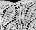 17ème rg: 1 m. end., *5 m. end., 1 jeté, 1 surj. dble, 1 jeté, 5 m. end., 1 jeté, 1 surj. dble, 1 jeté*. Term. par 1 surj. sple.