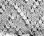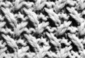 10ème rg: *4 m. env., tric. avec le brin correspondant du 4ème rg en dessous, 4 m. ordinaires envers*, 3 rgs jersey.