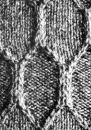 2ème rg: endroit du travail: 1 m. lis., 1 m. env., *1 m. end., enrouler 3 fois la laine autour de l'aiguille à la suite de cette maille (soit 3 jetés), puis 4 m. end., 3 m. env.*; finir le rang par 1 m. env., 1 m. lis.