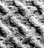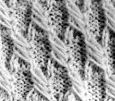 7ème rg: 1 m. lis., 3 m. env., 2 m. croisées devant (c'est-à-dire tric. la 2ème avant la 1ère à l'endroit), *croiser 2 m. derrière (c'est-à-dire tricoter la 2ème à l'end., en la faisant passer derrière la 1ère, tric. la 1ère à l'endroit), 6 m. env., 2 m. croisées devant*.