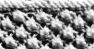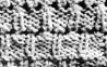 3ème rg: 1 m. lis., *faire 3 m. dans le même point, en piquant sous le même brin mais en faisant alternativement 1 m. end., 1 m. env. 1 m. end., puis prendre 3 m. ens., à l'envers*.