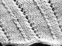 2ème rg: 1 m. lis., puis tric. à l'envers les 2 m. faites dans le même point ainsi que le jeté qui les sépare, tric. à l'end. les autres mailles.