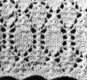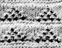 13ème rg: 1 m. lis., 2 m. ens. end., *1 jeté, 5 m. end., 1 jeté, 1 surjet double*.