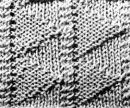 13ème rg: 1 m. lis., 2 m. env., *glisser 2 m. env. sur l'aig. auxiliaire derrière l'ouvrage, tric. les 2 m. end., puis les 2 m. env. en attente, 4 m. env.*. Continuer ainsi en décalant les mailles end. de 2 m. vers la droite à chaque 6ème rg sur l'endroit.