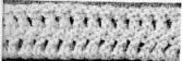 2ème rg: utiliser un carton de 15 mm de haut sur 10 cm de long, le placer devant l'ouvrage. *piquer le crochet sous les 2 brins de la br., ramener le fil qui est derrière le carton sur le devant et allonger la boucle jusqu'en haut du carton (15 mm). terminer comme 1 m. serrée, puis faire 1 m.l. et reprendre à *.