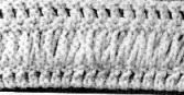 3ème rg: 1 rang de m. serrées en piquant toutes les 2 m. pour resserrer le point et avoir le même nombre de mailles serrées que de br. du début.