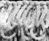 2ème rg: 1 m. en l'air pour tourner, *piquer le crochet sous les 2 brins horizontaux de la 1ère m. serrée, sur l'index gauche, former 1 boucle de 4 cm de haut, ou plus ou moins suivant l'effet désiré, puis prendre le bas de cette grande boucle, soit 2 brins, et les ramener comme 1 m. ordinaire, 1 jeté, tirer le fil au travers de cette boucle de 2 brins et de la maille du crochet, il reste une longue boucle sur l'envers du tricot. Reprendre à *en piquant le crochet dans la maille serrée suivante. Alterner 1 rang de m. serrées ordinaires et 1 rang de m. serrées à bouclettes.