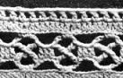 4ème rg: *1 br., 1 m. en l'air, reprendre à * en sautant 1 br. du rg précédent. Sur le 2ème côté du galon, répéter les 2ème, 3ème et 4ème rgs.