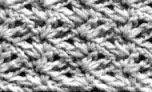 2ème rg: comme le 1er rg, en formant les groupes dans la 2ème m. sautée de la chaînette, 1 br. lis. pour finir le rang.