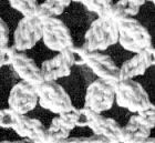 1er rg: *1 m. serrée (# 5) dans la 4ème m., 2m. en l'air, 1 b. (# 7) dans la même maille, 2 m. en l'air, 1 autre b. dans la même maille (on obtient un groupe), sauter 3 m., reprendre à *. Finir le rang par 1 m. serrée, 2 m. en l'air, 1 br. dans le même point.