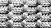 3ème rg: 2 m. en l'air pour tourner, *1 br. dans chacune des 3 m. serrées qui se présentent, puis 1 mouchet dans chacune des 5 m. serrées groupées. Pour un mouchet, **faire 1 jeté, piquer le crochet dans la maille serrée, 1 jeté, tirer le fil**; répéter de ** à ** encore 3 fois pour avoir 9 boucles sur le crochet, ensuite faire 1 jeté, écouler toutes les boucles en 1 fois, 1 m. en l'air, sauter 3 m. serrées et reprendre à *. Finir le rang par 3 br. sur les 3 dernières mailles serrées.