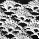 4ème rg: 2 m. en l'air, *1 m. serrée sur chacune des 7 br. du rang précédent, 5 m. en l'air; reprendre à *. Finir le rang par 5 m. en l'air 1 m. serrée dans la lisière.