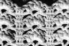 3ème rg: tout en mailles serrées en piquant dans la maille en l'air et au-dessus du mouchet pour avoir 2 m. au-dessus de chaque motif et le même nombre de mailles serrées qu'au 1er rg. Répéter toujours le 2èm et 3ème rg.