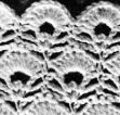 3ème rg: 3 m. en l'air pour tourner, 1 m. serrée sur chacune des 3 brides centrales de l'éventail, 3 m. en l'air; reprendre à *. Répéter toujours le 2ème et le 3ème rang.