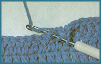 Au début de chaque rang, on remplace le premier point par 1 ml pour les ms, 2 ml pour les d.b., 3 ml pour bs, 4 ml pour les bd. Pour continuer le rang, sauter la 1ème m. (les ml remplacent le ler point).