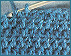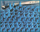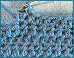 *Faire un jeté sur crochet avant de piquer celui-ci dans une maille, faire un jeté, tirer une boucle, faire un jeté, couler 2 boucles, faire un jeté, couler les 2 dernières boucles du crochet*. Répéter de *à*. (voir dessin)
