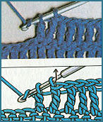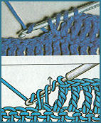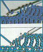 1. Faire 1 jeté sur le crochet le piquer dans la maille correspondante du rang précédent.2. Faire 1 autre jeté sur le crochet et le tirer en boucle au travers de cette maille. 3. Un autre jeté pour couler en 1 fois la boucle, le jeté et la maille qui sont sur le crochet.