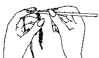Ci-bas, la figure vous montre la bonne position des mains pour tenir un crochet. Vous aurez une meilleure dextérité, si votre position est bonne.