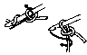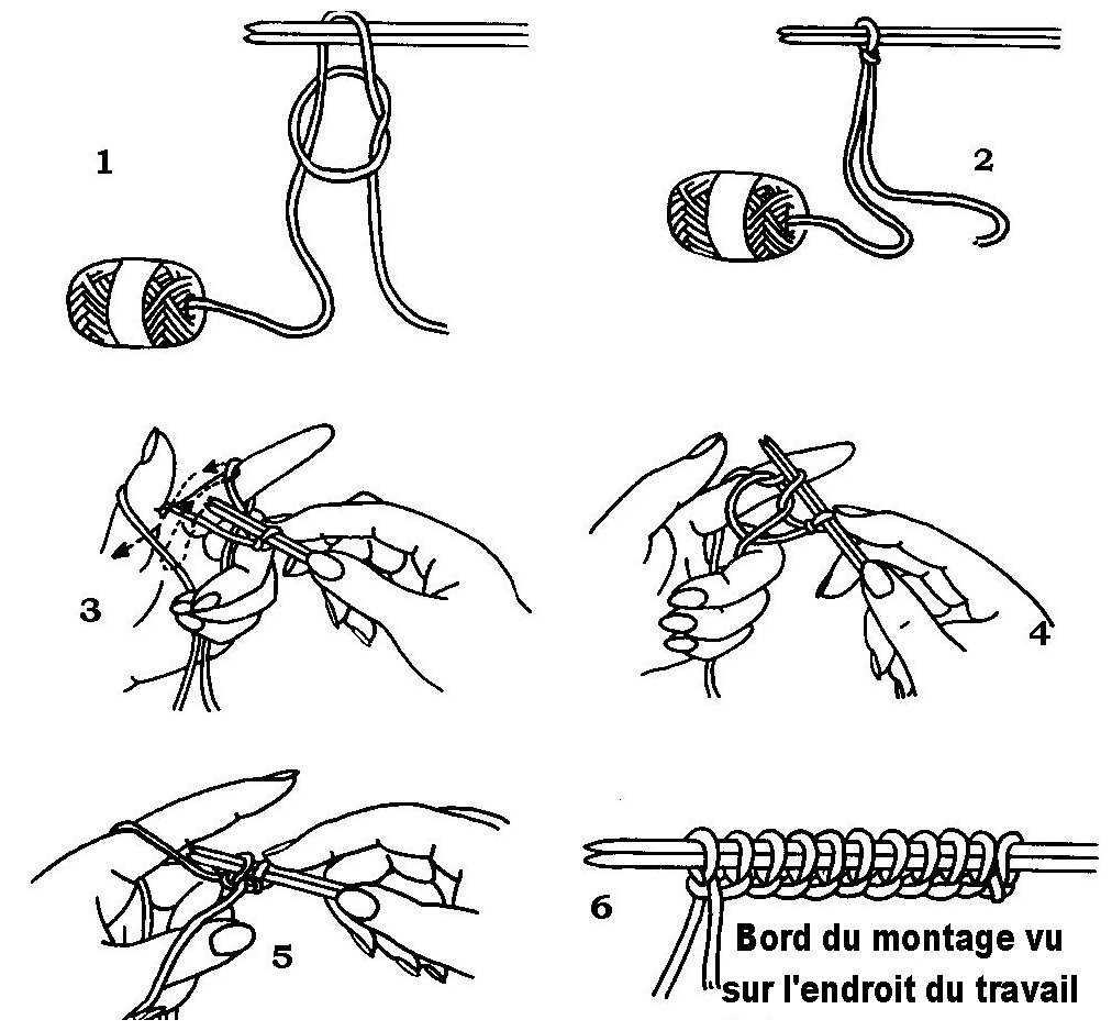 Former la première boucle ainsi: croiser l'extrémité du fil, et tenir le croisement entre le pouce et l'index. On obtient une boucle.