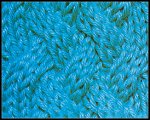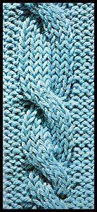 L'apparence d'une torsade varie énormément selon le nombre de rangs travaillés entre chaque croisement. L'illustration montre un échantillon semblable au 1er échantillon, mais on a changé le nombre de rangs entre les croisements.